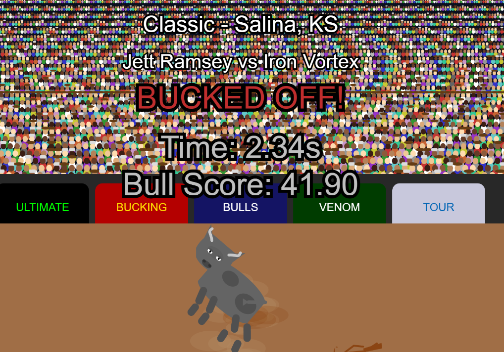 - Detailed bull stats: agility, spin, aggression, kicking power/speed/height, head movement, direction changes, chute temperament
